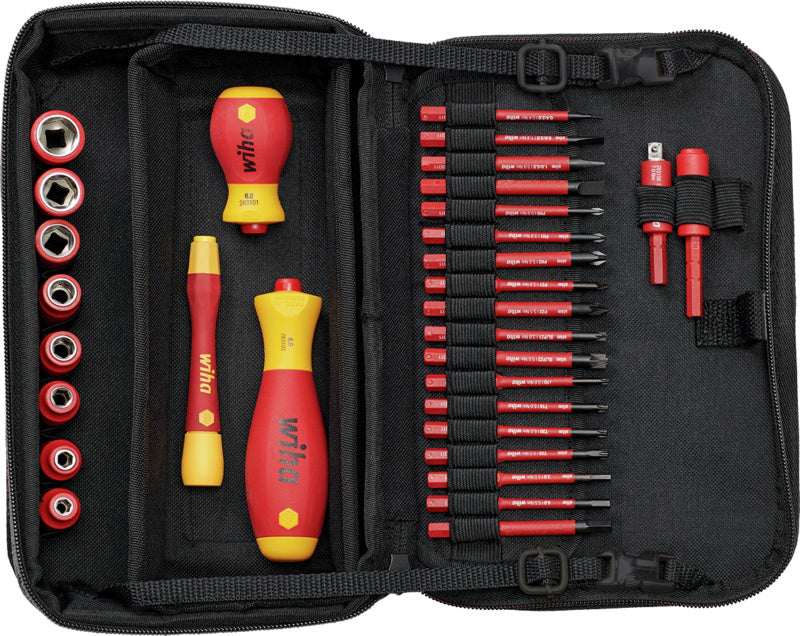 1x VDE slimBit plochý 2,0/3,5/5,5/6,5 mm / 1x VDE slimBit křížový PH 0,1/2, PZ 1/2, SL/PZ 1/2 / 1x VDE nástrčný klíč 1/4" AF 5/5,5/6/7/8/10/11/13 mm / 1x VDE slimBit vnitřní šestihran 3/4/5 mm, TX 10/15/20/25 / 3x VDE rukojeť 1/4" nebo 6 mm / 2x VDE adaptér