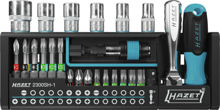 Vybaveno 18 bity o délce 25 mm, 11 bity o délce 50 mm v provedení TX, plochý, Phillips, vnitřní šestihran