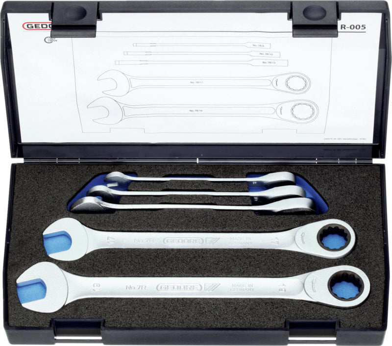 Sada otevřených klíčů s očkovou ráčnou