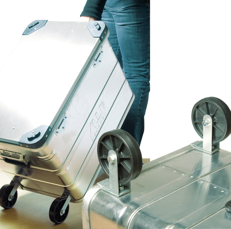Snadno namontovatelná sada s velkými plastovými kolečky usnadňující přepravu.