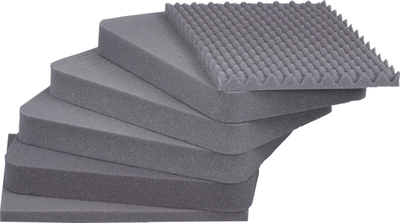 Sada sestávající z různých pěnových panelů; jeden základní panel pro každou krabici a jeden vlnkovaný výřez pěny pro víko