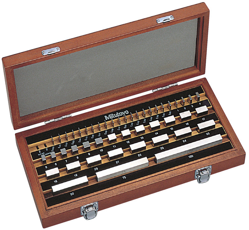 SKU: 32020975, Třída tolerance: 0, Počet kusů v sadě: 122 ks, Materiál: Ocel, Jmenovitá velikost vsadě: 1,005 mm;1,001-1,009 mm, po 0,001 mm;1,01-1,49 mm, po 0,01mm;1,6-1,9 mm, po 0,1 mm;0,5-24,5 mm, po 0,5 mm;30-100 mm, po 10 mm;25 mm;75 mm