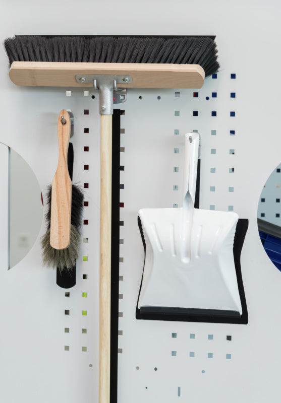 Ideální sada pro úklid dílny. Díky stínící fólii je pravděpodobné, že smeták bude po použití vrácen na své místo.