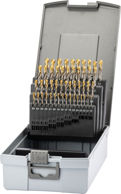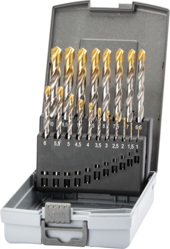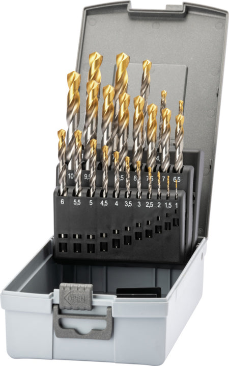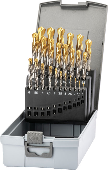 Sada spirálových vrtáků v kazetě, typ N, HSS, TiN povlak na hlavě