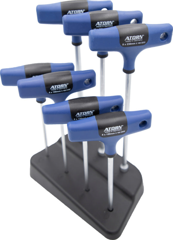 – 1 šestihranný nástrčný šroubovák s příčnou rukojetí velikosti 3, 4, 5 a 6 mm, každý s délkou čepele 150 mm – 1 šestihranný šroubovák s příčnou rukojetí velikosti 8, 10 a 13 mm, každý s délkou čepele 230 mm