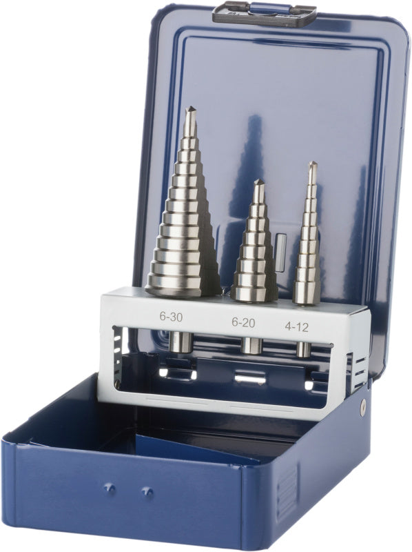 Sada stupňovitých vrtáků HSS, nepovrstvené, přímá drážka