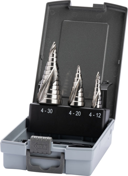 Sada stupňovitých vrtáků se stupňovitým hrotem HSS STEP