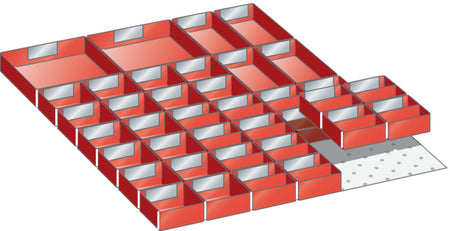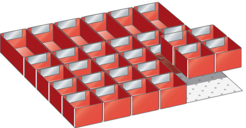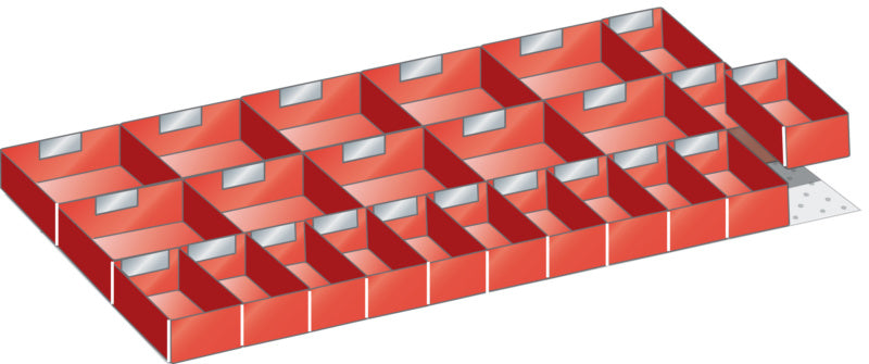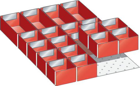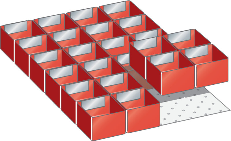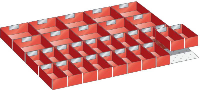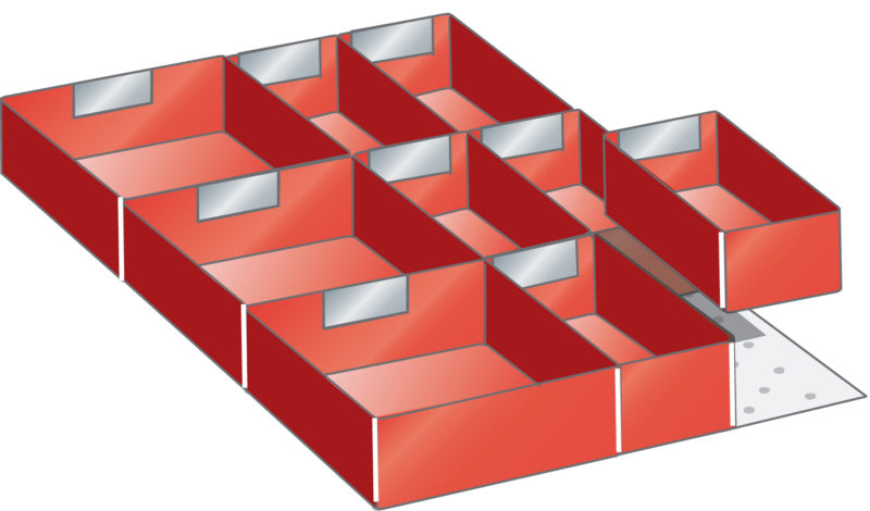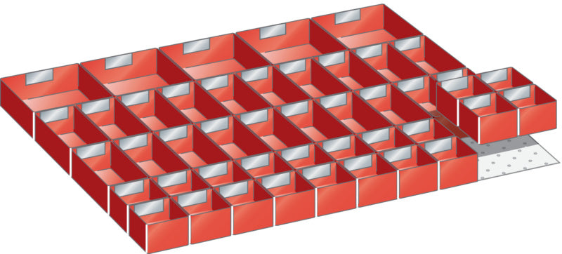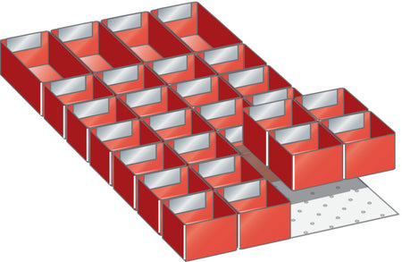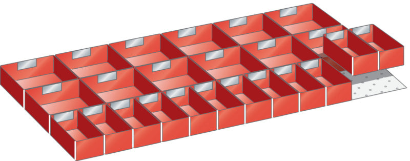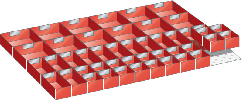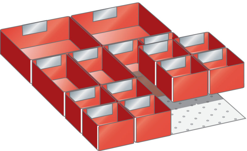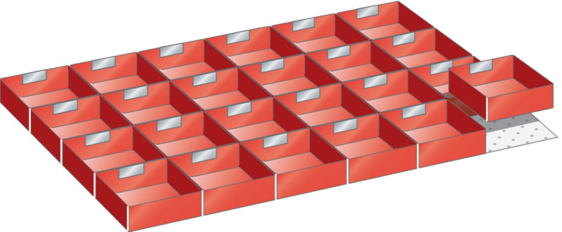 Vkládací boxy: Lze použít v modulárním systému se všemi velikostmi zásuvek. Provedení: Vkládací boxy, madlo s označením a dělicí prvek z polystyrénu. Barva: Červená barva.