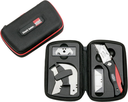 Obsah sady: 15x trapézová čepel, 5x háková čepel, 2x čepel na linoleum, 2x začišťovací čepel