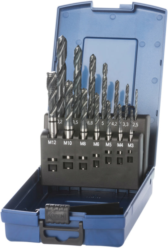 Sada závitníků + jádrový vrták M3–M12 HSSE slepý otvor ≤ 2,5xD