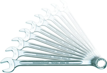 Praktická sada různých kombinovaných klíčů s nejběžnějšími velikostmi