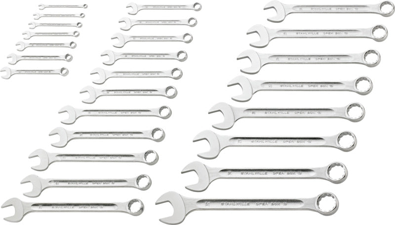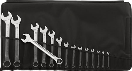 Praktická sada různých kombinovaných klíčů s nejběžnějšími velikostmi