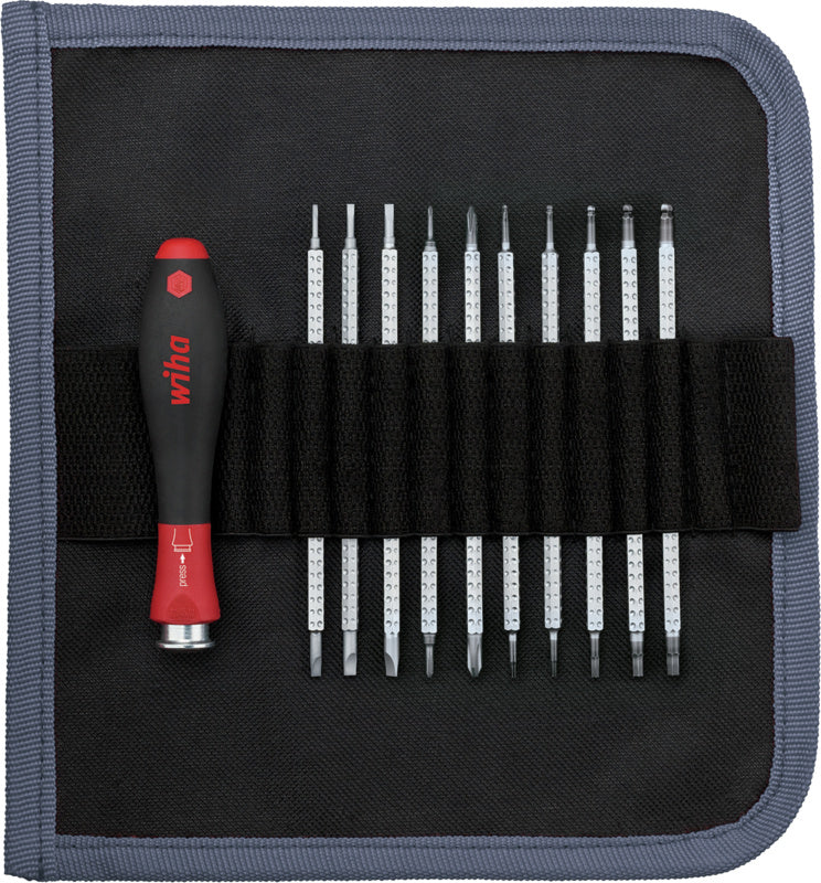 Čepele z chrom-vanadium-molybdenové oceli, barevně kódované břity, chromový hrot Wiha