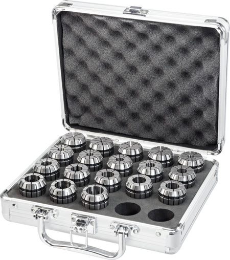 1x sada upínacích kleštin ER v hliníkovém pouzdře.