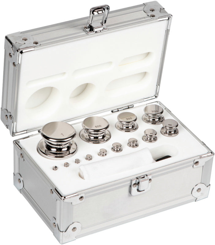 Závaží o hmotnosti 1 g a vyšší jsou vyrobena z leštěné nerezové oceli, ve tvaru knoflíku. Miligramová závaží s hmotností pod 1 g jsou vyrobena z nerezové oceli, ve tvaru kotouče