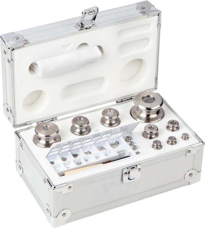 Závaží o hmotnosti 1 g a vyšší jsou vyrobena z nerezové oceli, jemně leštěné, ve tvaru knoflíku. Miligramová závaží s hmotností pod 1 g jsou vyrobena z nerezové oceli, ve tvaru kotouče