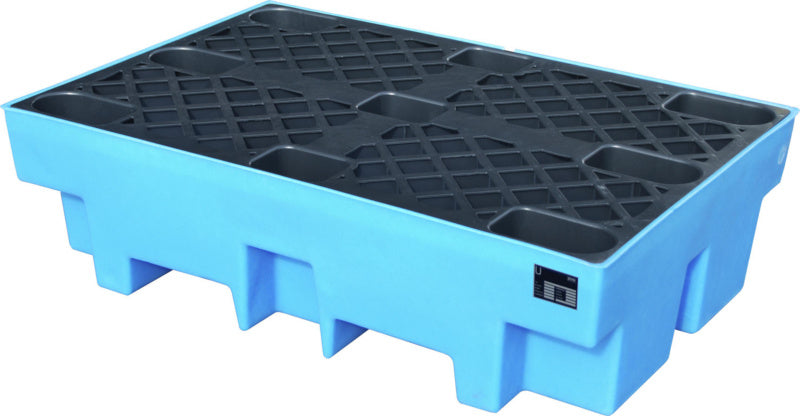 Uskladnění sudů na 200 l v souladu s předpisy. Odolné proti kyselinám, alkalickým roztokům a olejům a jiným nehořlavým médiím.