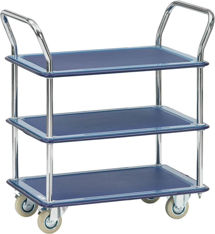Servírovací vozík se 3 ložnými plochami z ocelového plechu