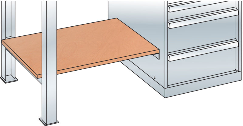 Police mezi nohama stolu: Tloušťka 20 mm, max. nosnost 20 kg. Provedení: multiplexní deska, předvrtaná, včetně upevňovacího materiálu.