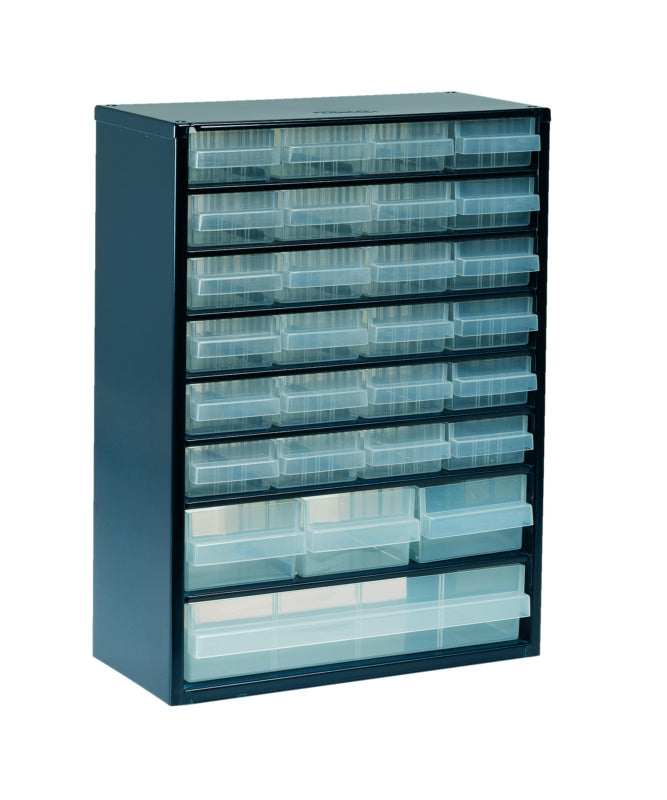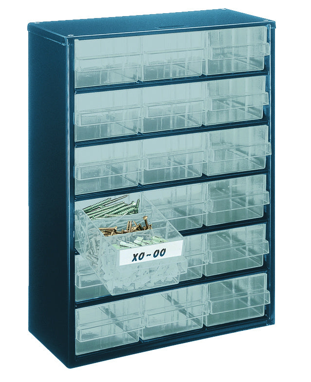 Pořádek, přehled a rychlý přístup: funkční skladovací skříň poskytuje úsporný a prachotěsný úložný prostor na malé díly. Může být instalována na stěně, jako volně stojící nebo v rámci systému.