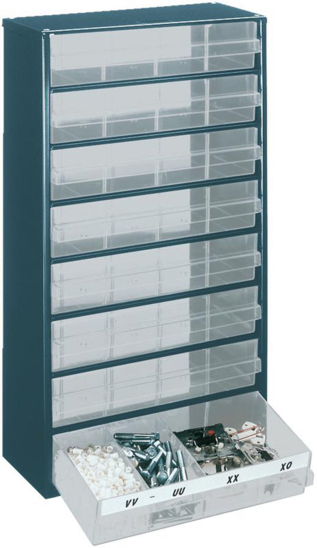 Pořádek, přehled a rychlý přístup: funkční skladovací skříň poskytuje úsporný a prachotěsný úložný prostor na malé díly. Může být instalována na stěně, jako volně stojící nebo v rámci systému.