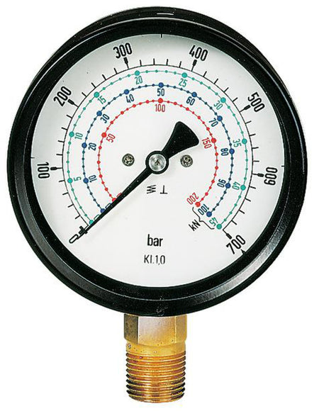 Tlakoměr s nerezovou Bourdonovou trubicí.