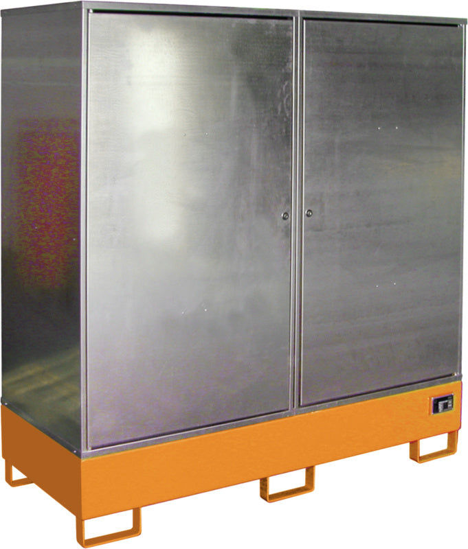 Vyrobeno z ocelového plechu, se sběrnou vanou, uzamykatelné