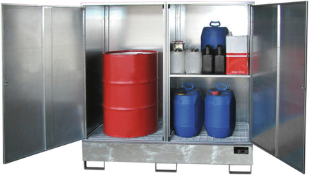 Pro předpisové skladování hořlavých kapalin s teplotou vznícení 55 °C a pro kapaliny ohrožující vody v kategoriích GHS 1–4, v interiéru nebo pod střechou
