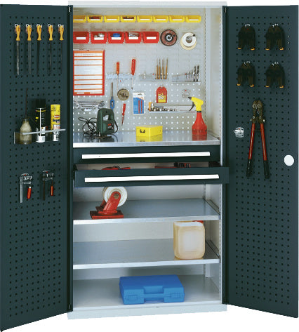 Skříň s dvoukřídlými dveřmi s policí a zásuvkami