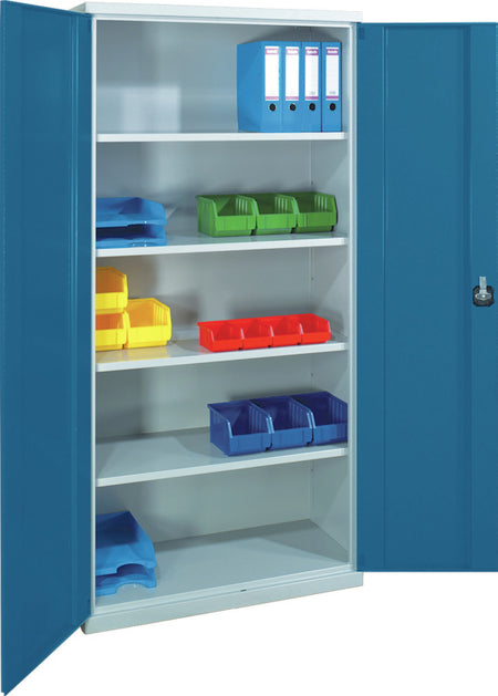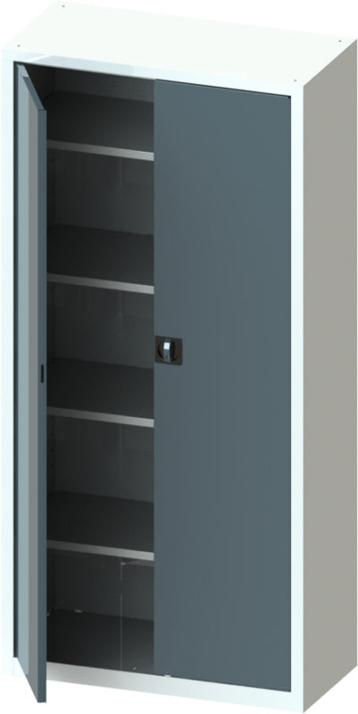 Skříň s dvoukřídlými plnými plechovými dveřmi, výška 1950 mm