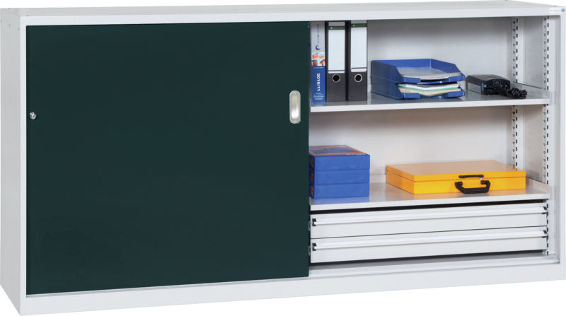 Skříň s posuvnými dveřmi s plnými plechovými dveřmi, výška 1030 mm