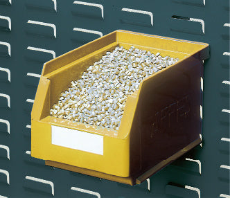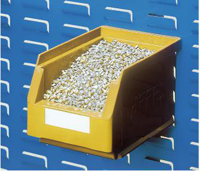 Pro přehledné skladování malých dílů v průhledných skladovacích krabicích RASTERPLAN. Štěrbiny v zadní stěně umožňují zavěšení průhledných skladovacích krabic přímo na závěsné pásky.