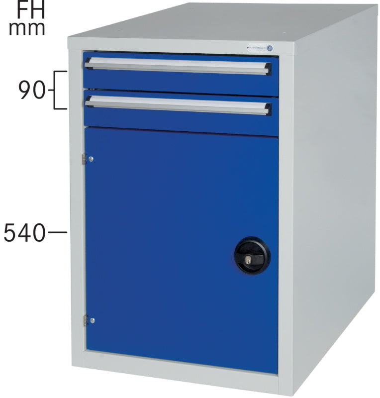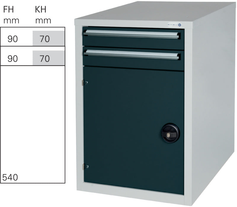 Skříňka k montáži pod dílenský stůl se 2 zásuvkami a 1 dveřmi