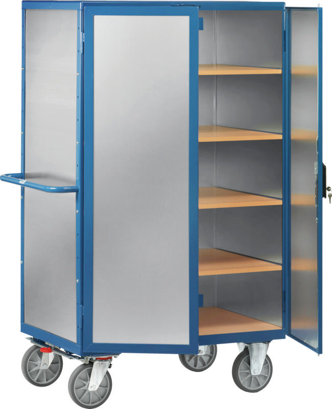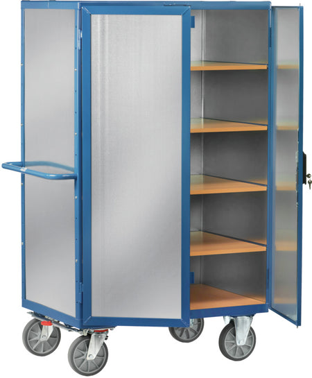 S dvojitými dvoukřídlovými dveřmi z úhelníkové oceli s navařenou drátěnou mříží