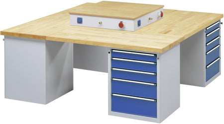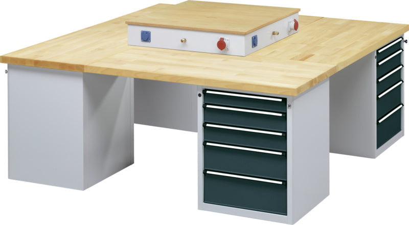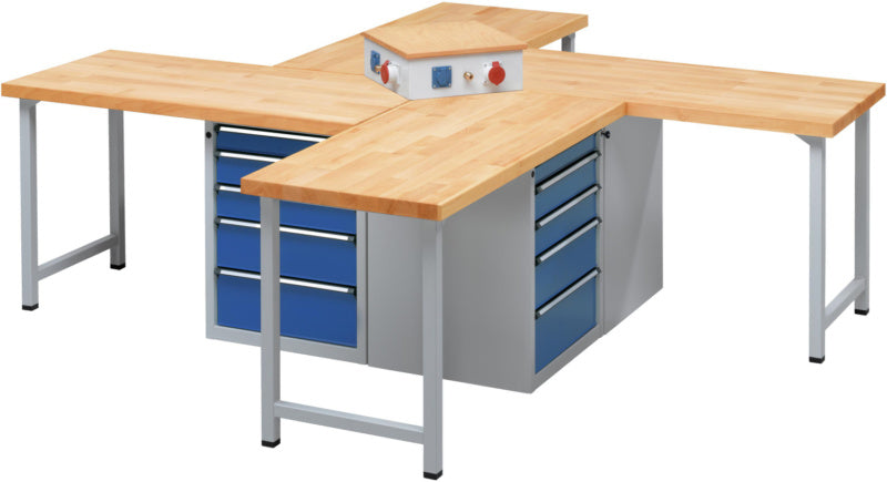 Mnoho různých kombinací a konfigurací podle pracovních požadavků. Prostorově úsporná a přehledná konstrukce skupinových dílenských stolů umožňuje přizpůsobit pracoviště daným úkonům a optimalizovat jej podle pracovních postupů.