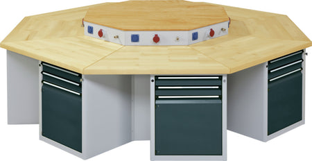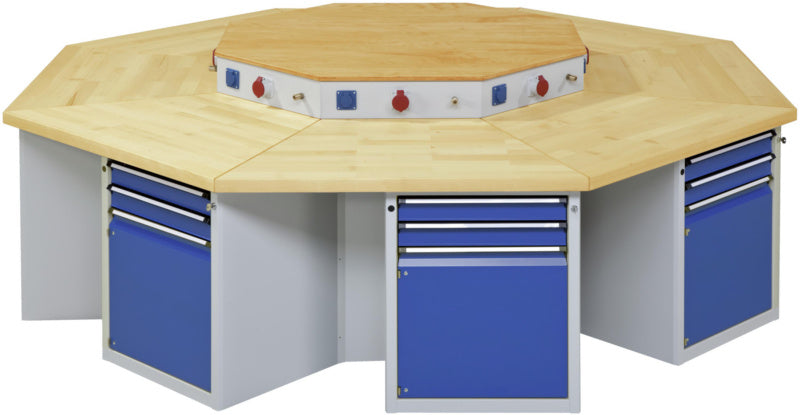 Mnoho různých kombinací a konfigurací podle pracovních požadavků. Prostorově úsporná a přehledná konstrukce skupinových dílenských stolů umožňuje přizpůsobit pracoviště daným úkonům a optimalizovat jej podle pracovních postupů.