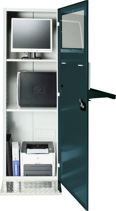 Pro bezpečné a chráněné uložení plochých displejů do 26", jako počítačové pracoviště ve výrobních a skladovacích oblastech.