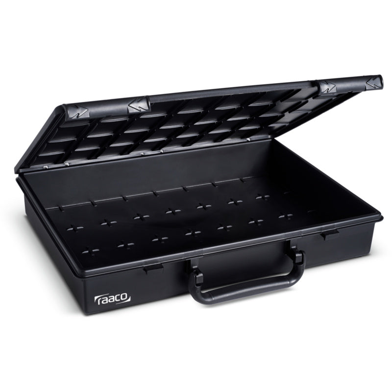 Sortimentový kufr ESD Assorter 55 s U-profily ve víku, které zabraňují klouzání obsahu během přepravy. Lze rozdělit pomocí vložek ESD (k dispozici jako příslušenství). Vybaveno posuvnými zámky a rukojetí.