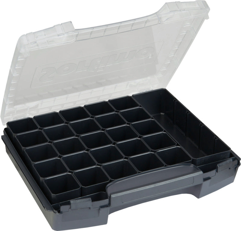Vybaveno průhledným víkem, které umožňuje neustálý přehled o obsahu. To eliminuje čas potřebný k vyhledávání materiálu a zásoba malých dílů je vždy viditelná. Ihned je vidět, kdy je třeba materiál doplnit; tím se vyhnete nákladným prostojům.