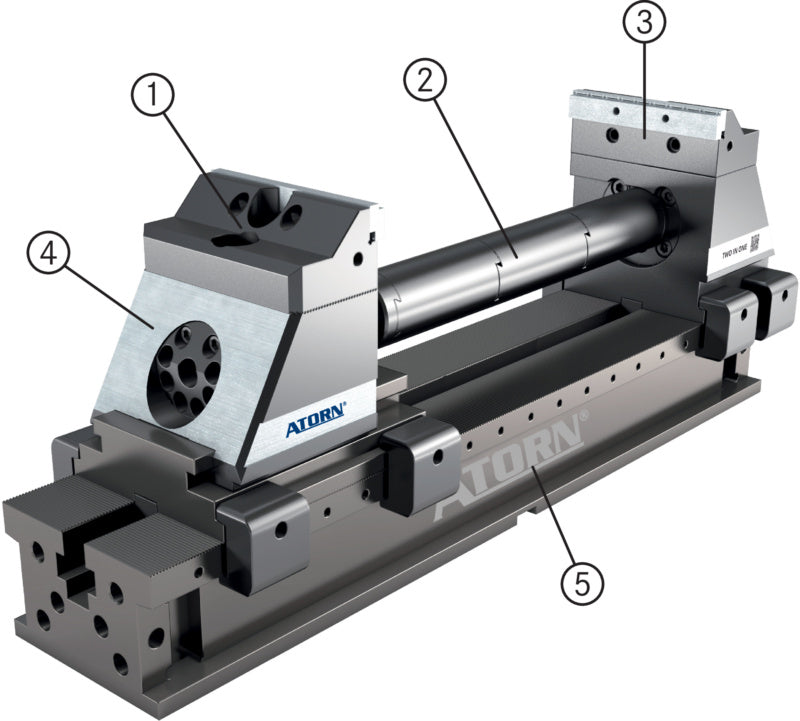 Dva v jednom: Systém lze použít jako 5osý a vícenásobný upínací systém. Jedná se o jedinečnou funkci. Základem je upínací vedení ATORN z řady 120