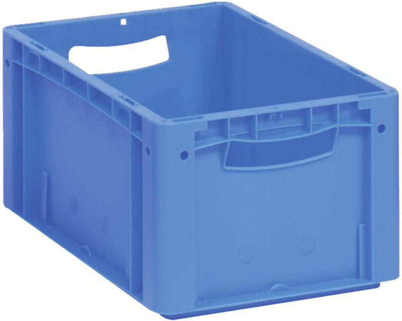 Ideální pro dopravníky a válečkové dráhy díky zaobleným rohům a plochému dnu; rozměry přizpůsobené velikosti Euro palety, velký vnitřní objem díky optimálnímu provedení stěny, snadné čištění díky uzavřenému provedení s hladkým dnem a stěnami