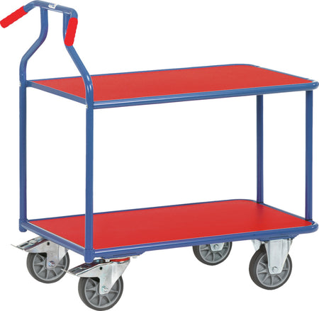 Plošina z dřevěné desky, povrch červeně lakovaný
