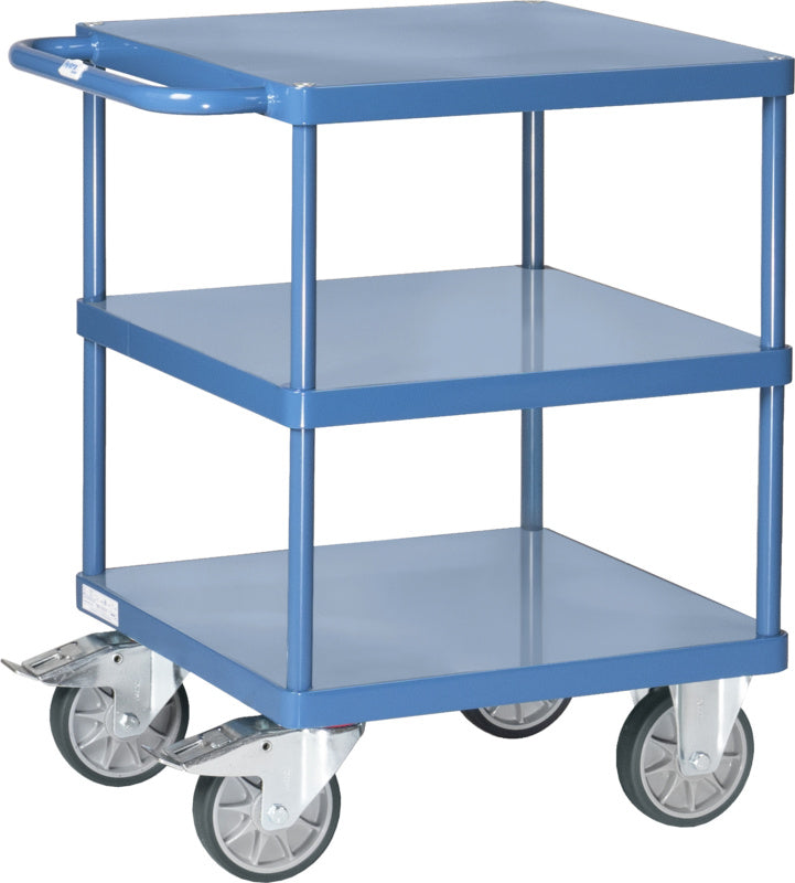 Stolový vozík se třemi čtvercovými plošinami z ocelového plechu