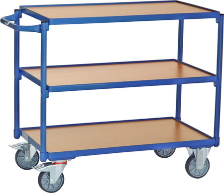 Stolový vozík se třemi ložnými plochami z opracovaného dřeva