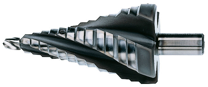 Stupňový vrták, HSS, bez povrchové úpravy, tvarově broušený, se spirálovou řeznou hranou pro nejvyšší nároky na rozměrovou přesnost a spolehlivost procesu
