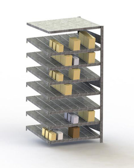 Police mají sklon 18°, takže skladované zboží automaticky sklouzne k přední části za účelem vyjmutí