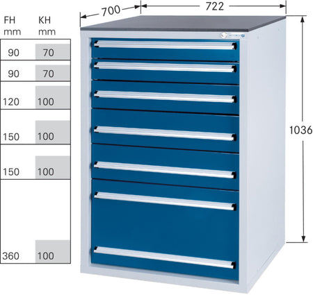 Systém zásuvkových skříní 700 S se 6 zásuvkami