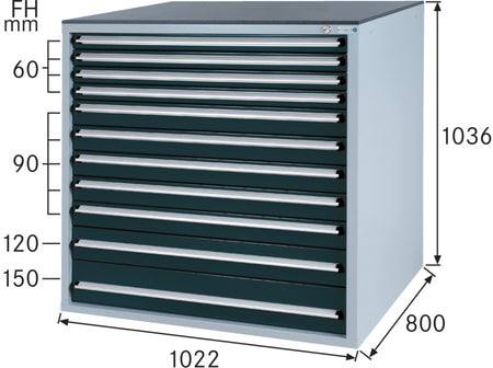 Systém zásuvkových skříní 800 B se 11 zásuvkami
