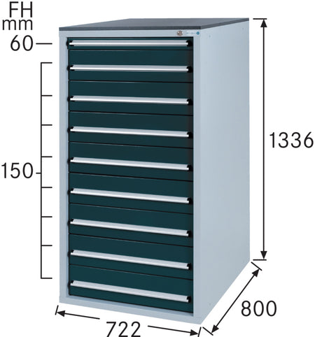 Systém zásuvkových skříní 800 S se 9 zásuvkami