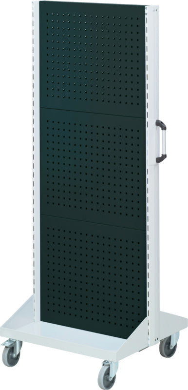 Dodávka: Profilové opěry, posuvné madlo a stěny z děrovaného plechu sestavené, kolečka nenamontovaná